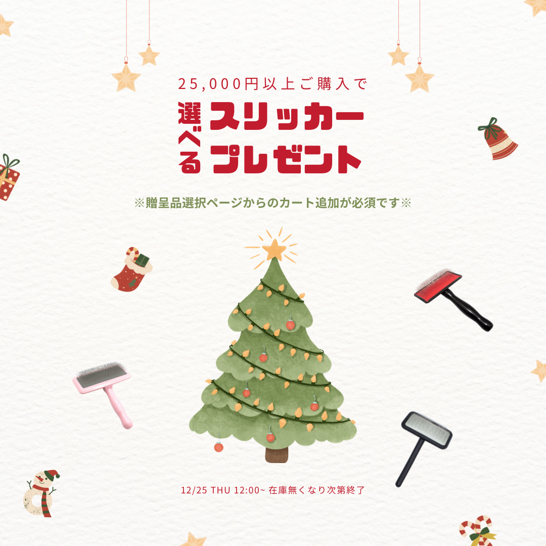 こんにちは、SilverLineJapanです✂︎ . 今年1年間のご愛顧に感謝を込めて プレゼントキャンペーンを行います🐶 . ✴︎キャンペーン詳細✴︎ 2025年12月25日(木)12:00より 25,000円以上ご購入いただくお客様へ 選べるスリッカーをプレゼント🎁 ※在庫無くなり次第終了 . ✴︎プレゼント受取方法✴︎ 最終お支払額が25,000円以上の状態で、 贈呈品選択ページよりご希望の贈呈品を 1点カートに追加してください🛒 . ★贈呈品選択ページはこちら↓ 【選べるプレゼント】25,000円以上ご購入でスリッカープレゼント . ✴︎選べるスリッカー✴︎ ノーストレススリッカーS ノーストレススリッカーM ノーストレススリッカーL ブラックラベルマルチスリッカーM ブラックラベルマルチスリッカーL ブラックラベルマルチスリッカーLT・チップ ソフトスリッカーM・ミント ソフトスリッカーL・ピンク . ※贈呈条件の金額はクーポン・ポイント使用後の 最終お支払い額(税込・送料込)基準となります ※ 下記の場合は贈呈対象外となります ・キャンペーン期間前のご注文 ・本ページから贈呈商品をカートに追加されていないご注文 ※ 贈呈品と同じ商品を 通常販売商品としても取り扱っておりますので、 お間違いのないようご注意ください ※ 1注文番号につき1点のみの贈呈となります ※ 輸送時の衝撃により、 箱に潰れや破れが見られることがございます 交換の理由とはなり得ませんので、 あらかじめご了承ください . #シルバーライン #silverline #トリミングシザー #トリミング #トリマー